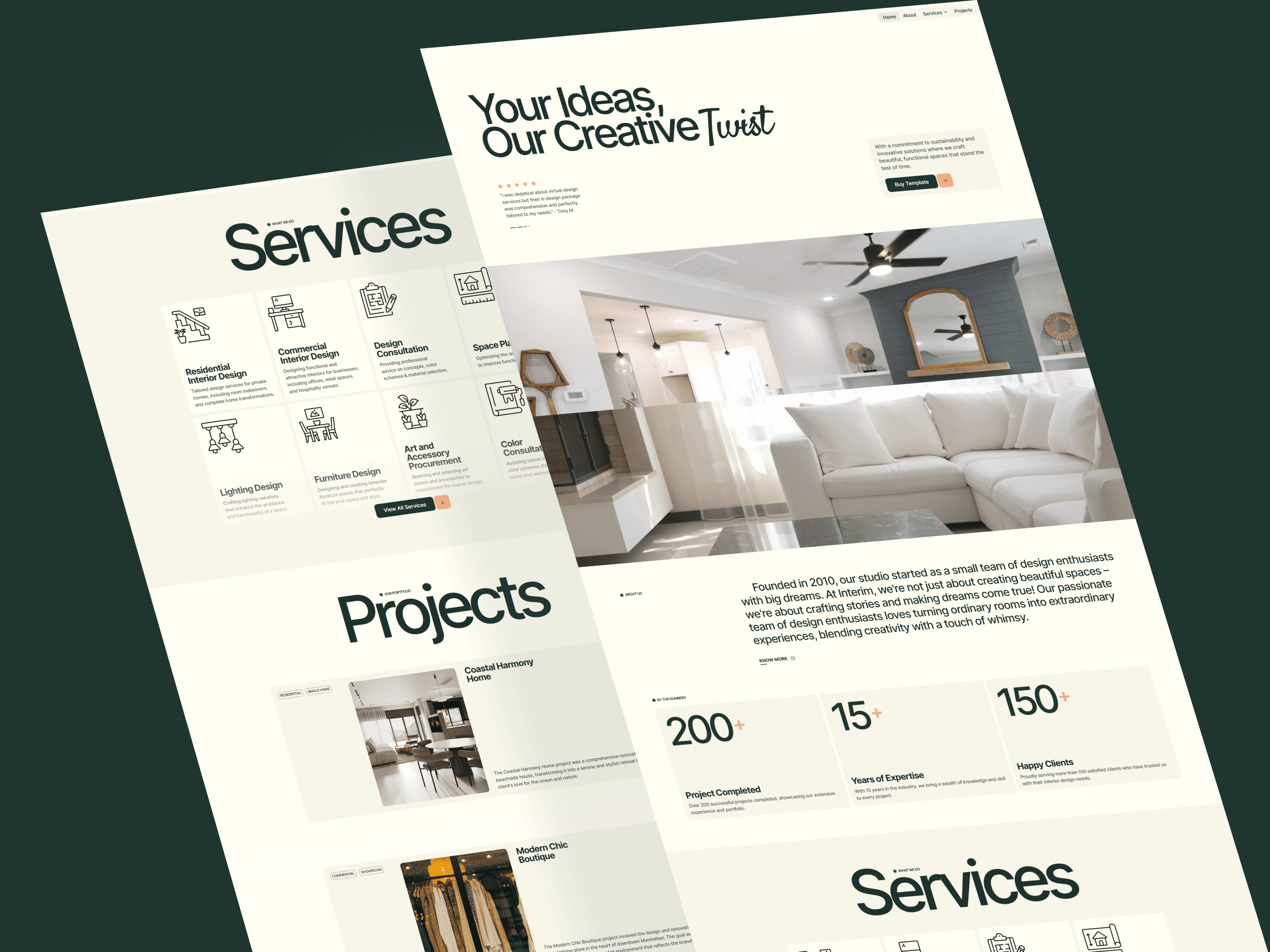 Interim is built for interior design studios that balance creativity with professional structure. It is designed to communicate services, projects, and studio identity clearly. And this template is best for commercial interior designers, residential studios, and multidisciplinary practices. It works well for designers handling client-led projects with defined scopes.