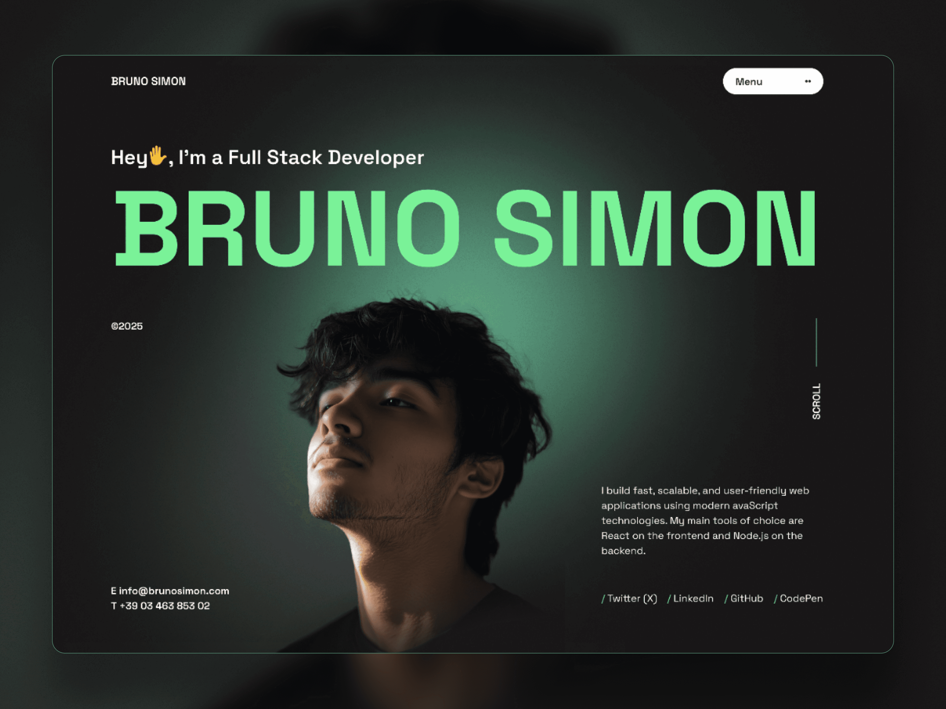 Spacing, contrast, and layout consistency reduce cognitive load, which keeps visitors engaged longer. The navigation is minimal, ensuring your projects remain the primary focus throughout the experience.