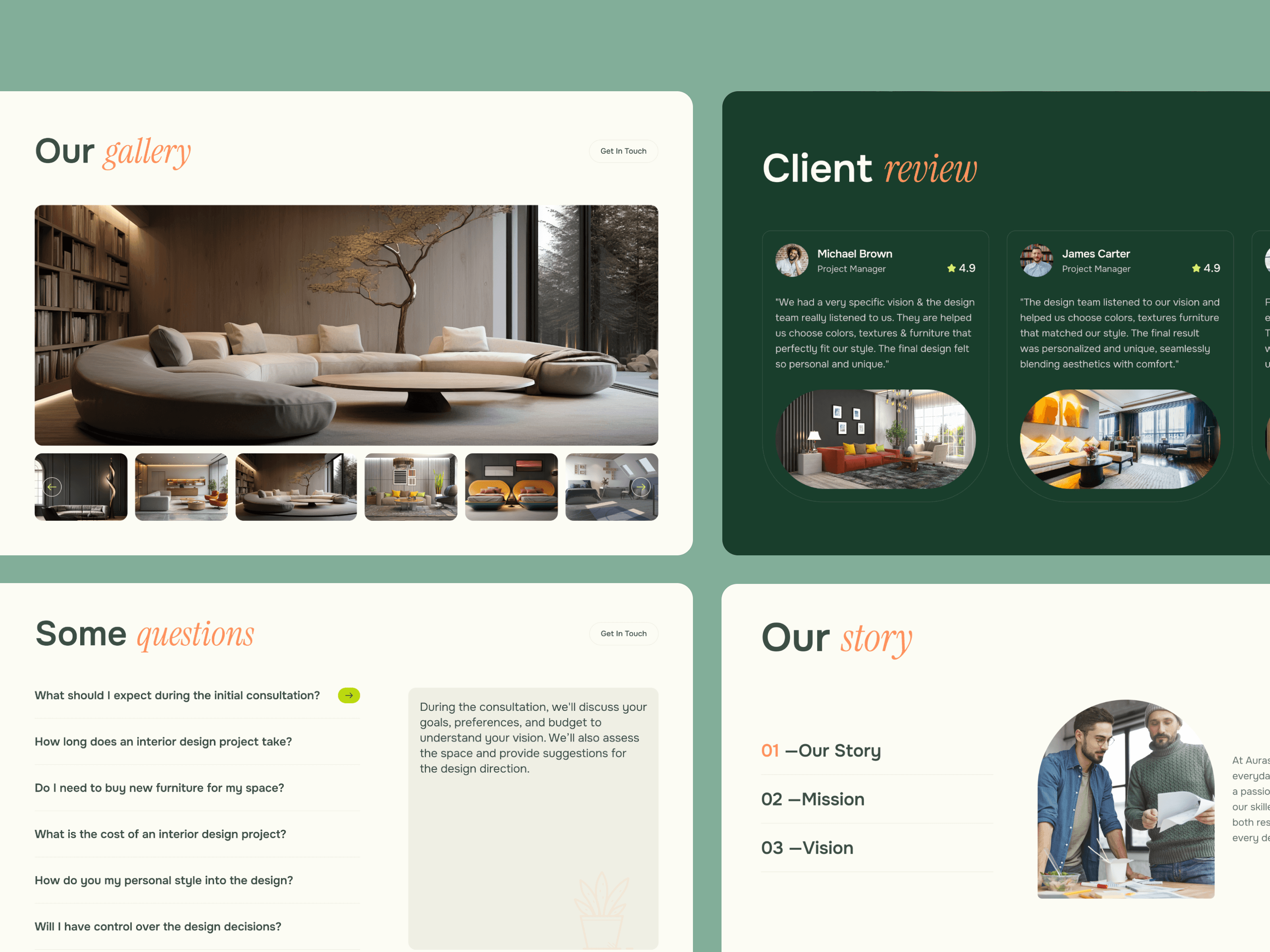 Interim organizes content in a way that mirrors how clients think, services, projects, and studio information are easy to understand quickly. Visual hierarchy keeps layouts readable even with detailed imagery, preventing overwhelm, especially for non-design audiences.
