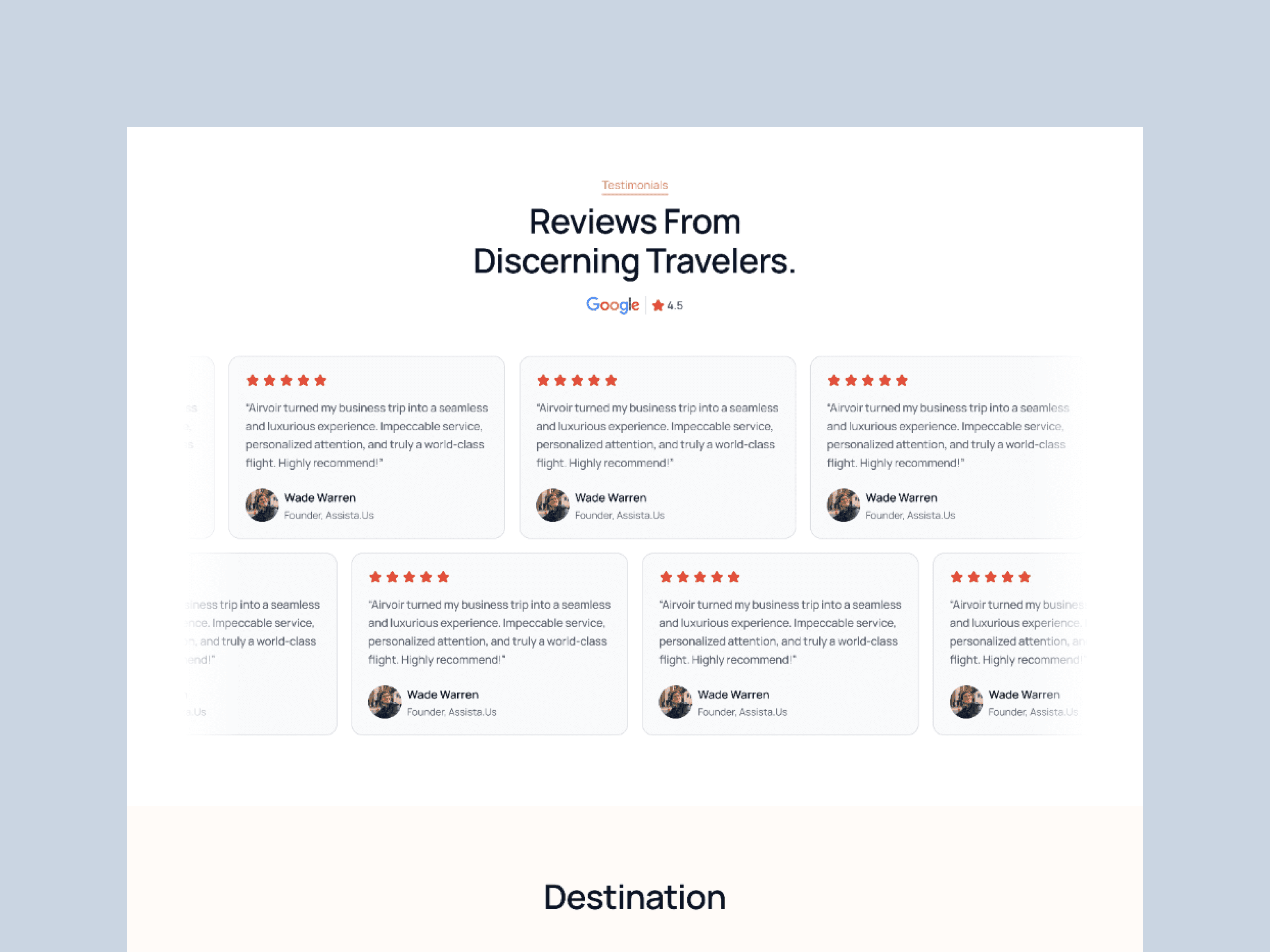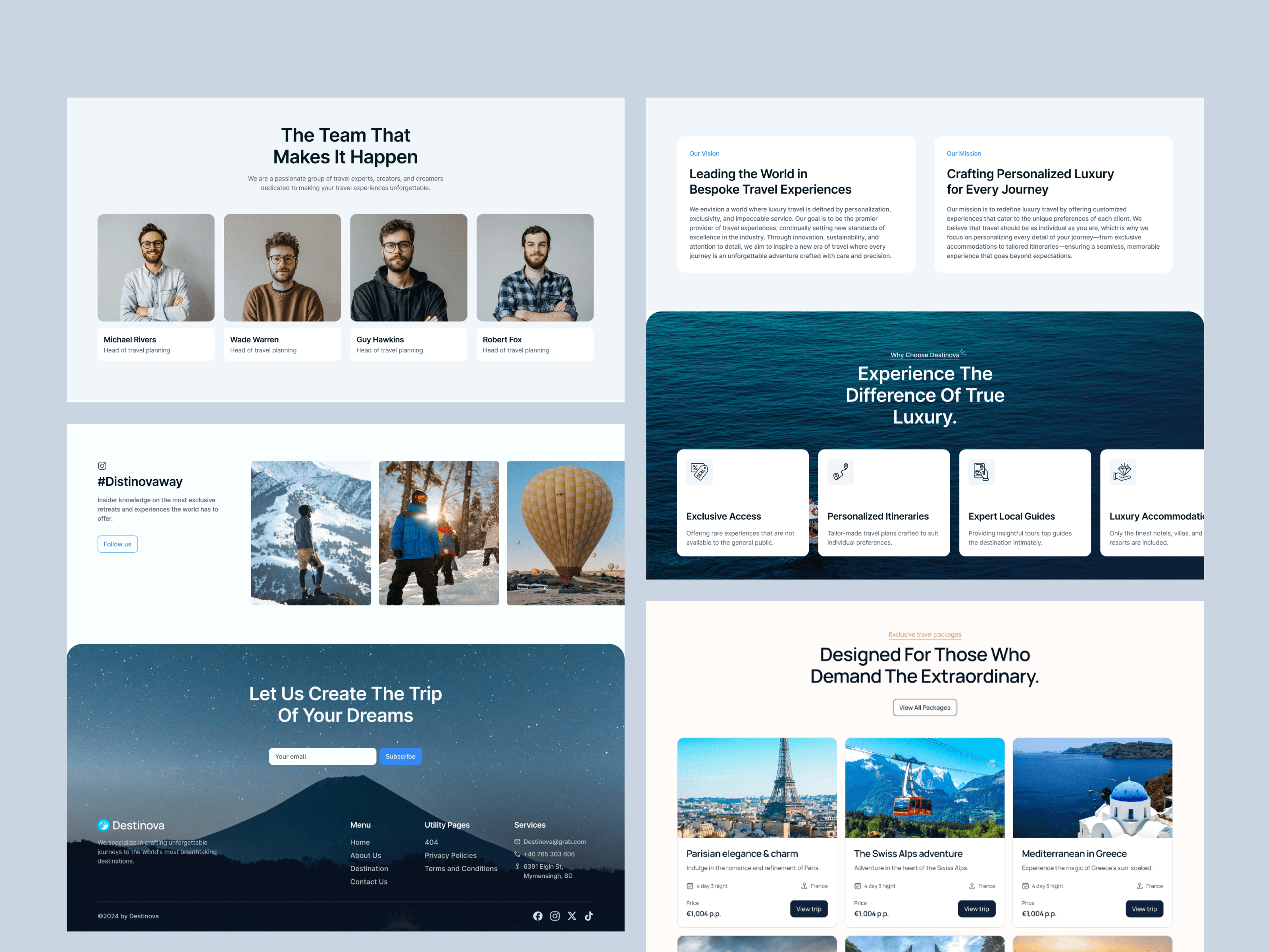 Looking for a travel agency platform that embodies the essence of luxury travel? Destinova is the ultimate Framer/ Webflow Template for any travel company agency or the travel agency aiming to inspire wanderlust and appeal to high-end clientele. Ready to redefine your travel agency and create unforgettable experiences? Explore Destinova now!