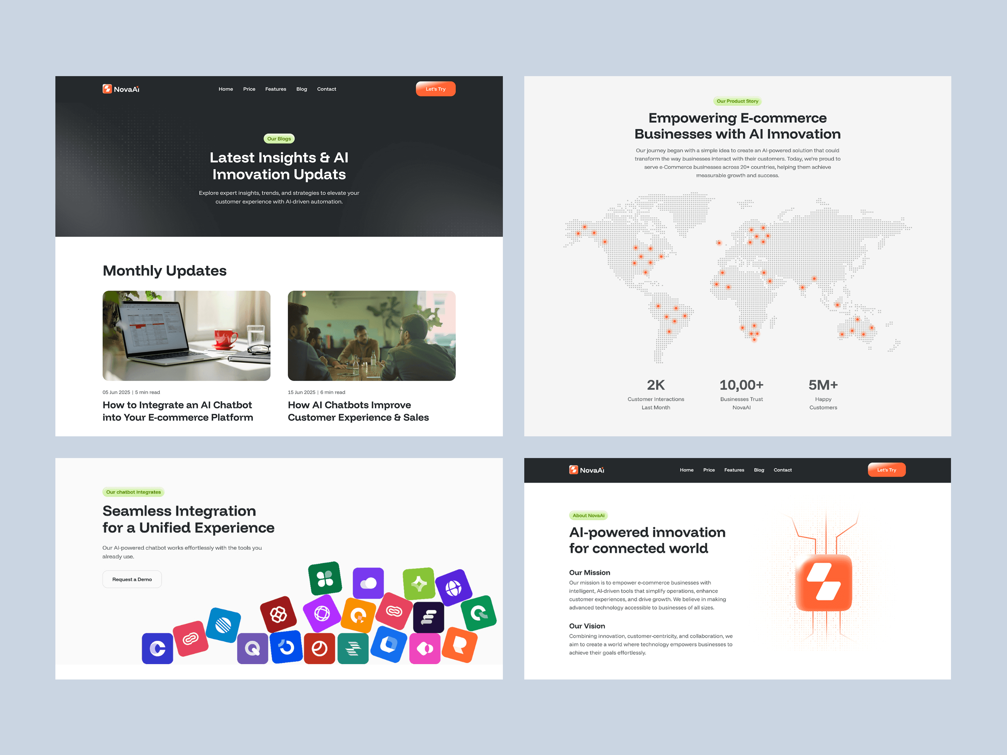 NovaAI is a sleek, modern Framer website template tailored for AI chatbot startups and e-commerce automation tools. Whether you're offering intelligent virtual assistants, personalized shopping bots, or support automation tools, NovaAI is designed to help you create a strong digital presence—no code required. With a focus on conversions, clarity, and credibility, this template is ideal for AI-driven product launches and demo sites.